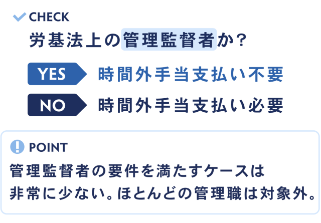 労基法の「管理監督者」に該当しなければ、時間外手当等を支払う必要がある