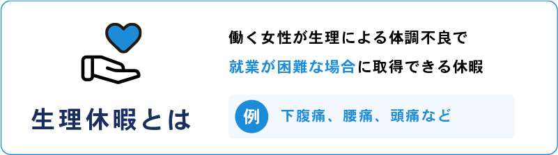 労働基準法第68条に基づいており、生理日に就業が著しく困難な女性が休暇を請求した際、企業はこれを拒否できません。また対象は正社員だけでなく、契約社員、パート、アルバイトなど非正規雇用の労働者も含まれます。
