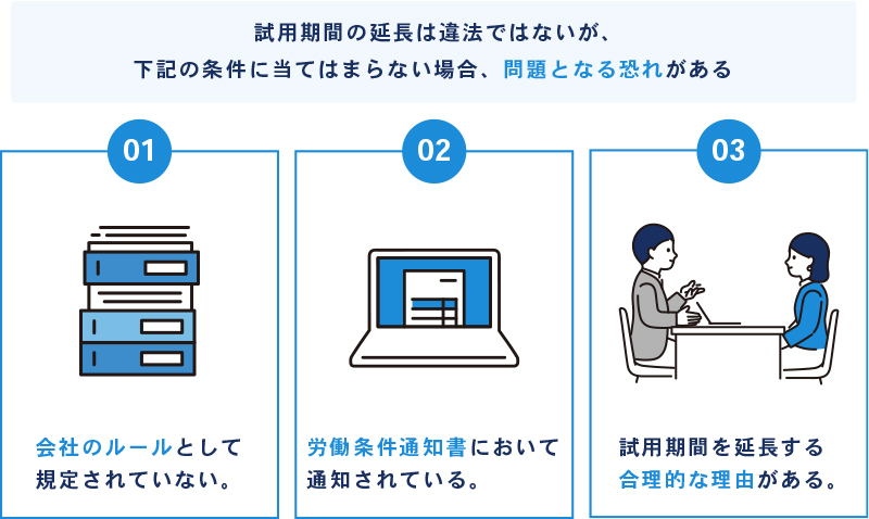しかし、業務能率が悪く、正社員としてはバランスが悪いので、ためらっています。試用期間を延長して様子を見ることはできますか?