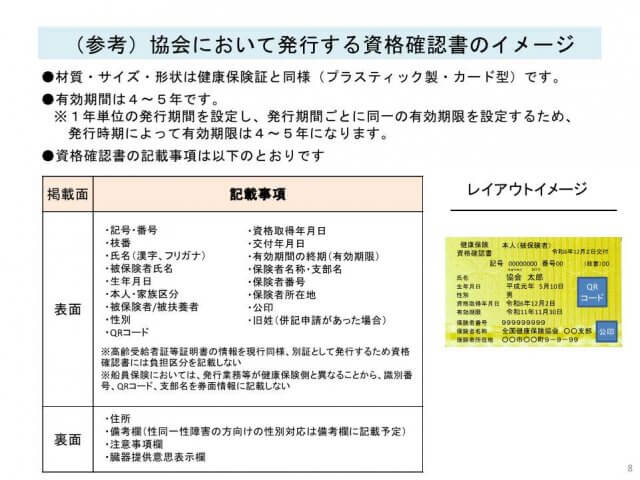 ・現行保険証と同様に、退職時には回収し協会けんぽに返却が必要です。